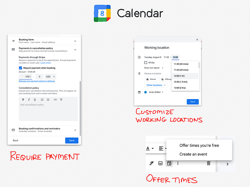 [ad_1] With Google Calendar's new features, you can offer times to meet in email, convey…
