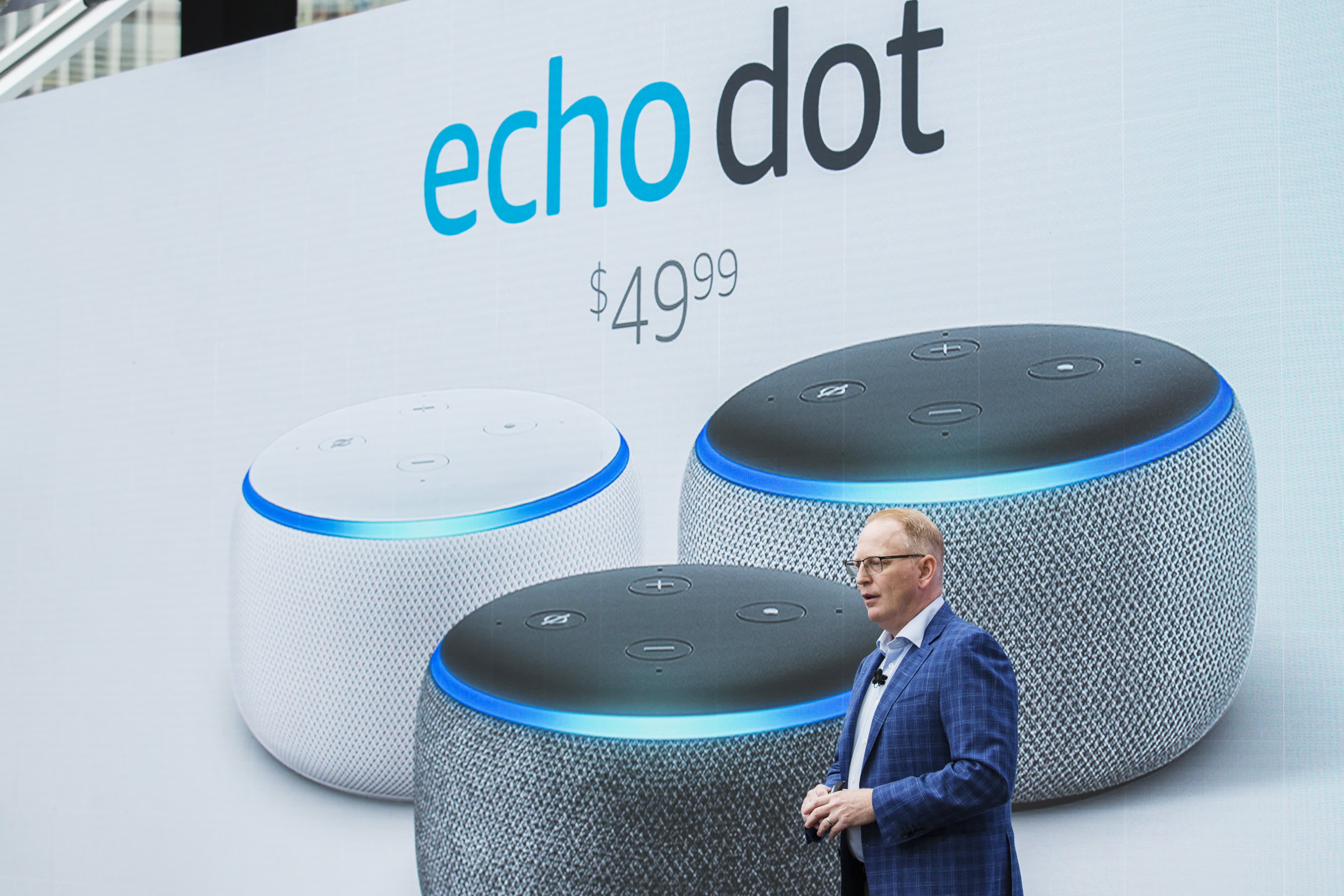David Limp, senior vice president of devices and services at Amazon.com Inc., presents the Amazon…