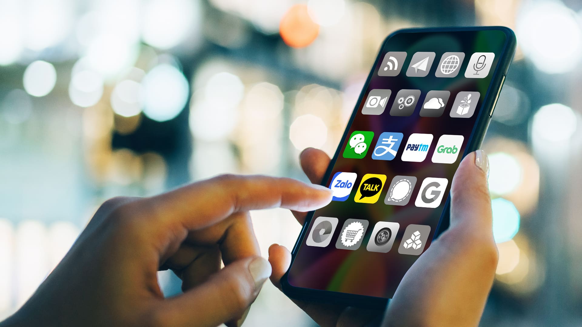 A Gojek driver looks at a smartphone in Jakarta, Indonesia, on Monday, Dec. 11, 2023.…