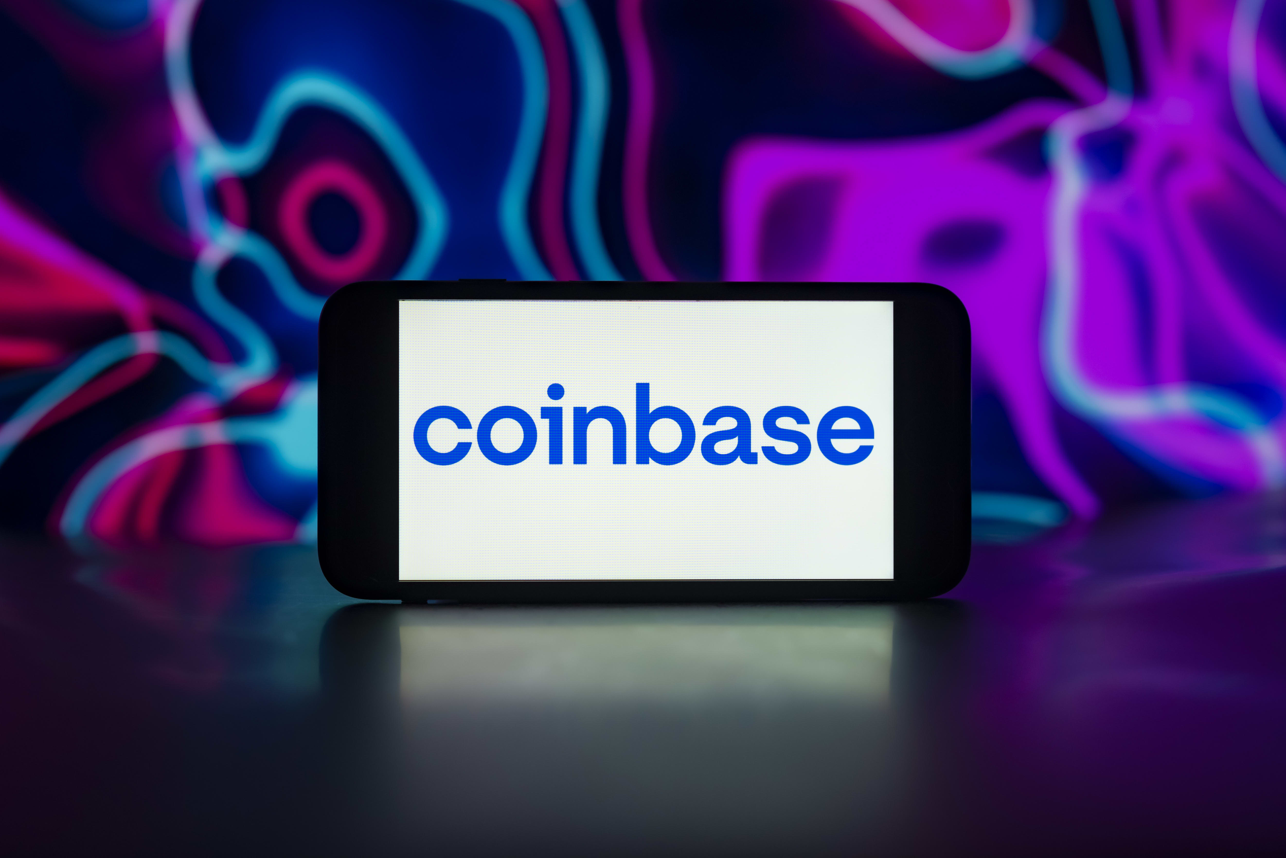 In this photo illustration, the Coinbase logo is seen displayed on a mobile phone screen. Idrees…