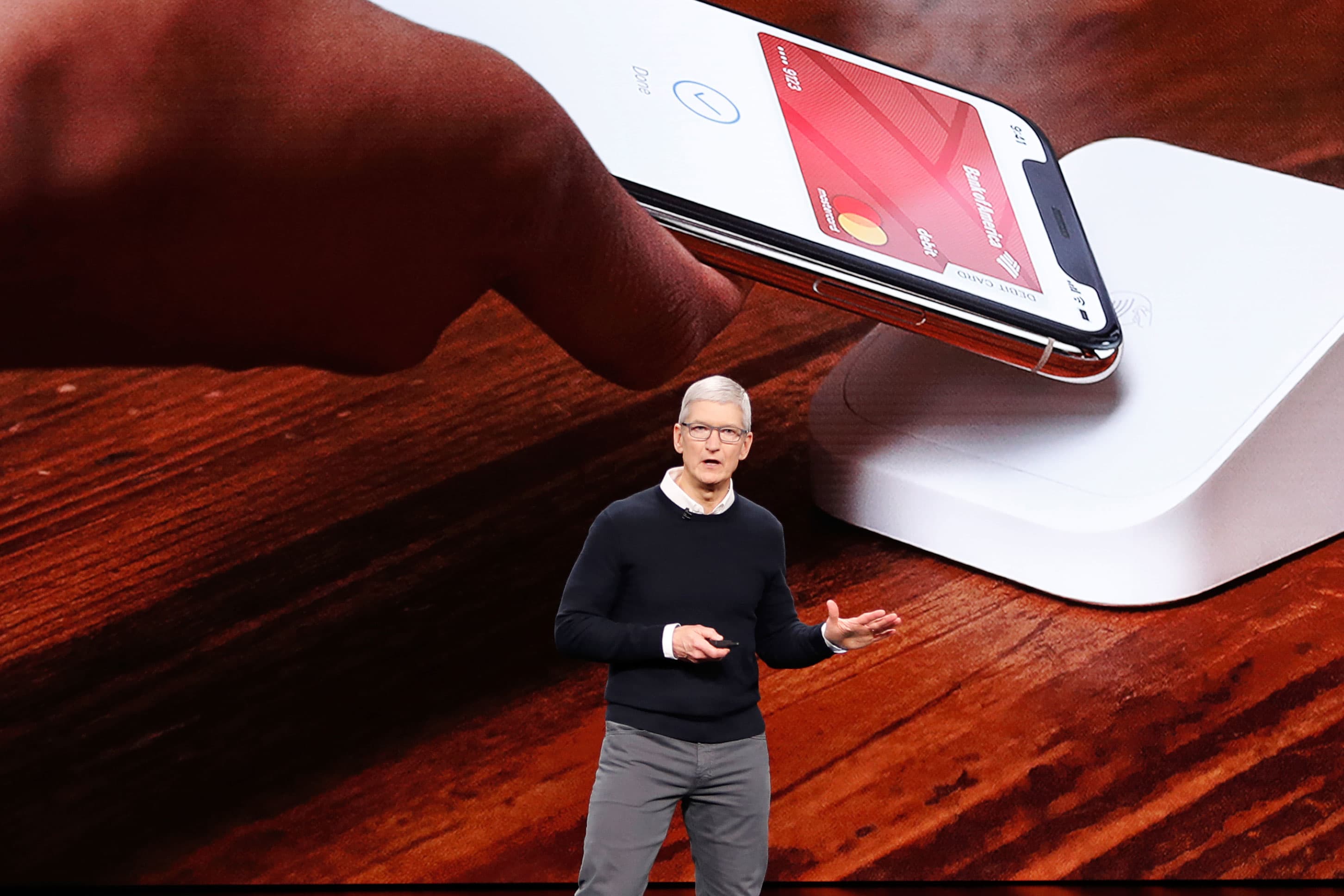 Apple CEO Tim Cook speaks during an Apple special event at the Steve Jobs Theater…